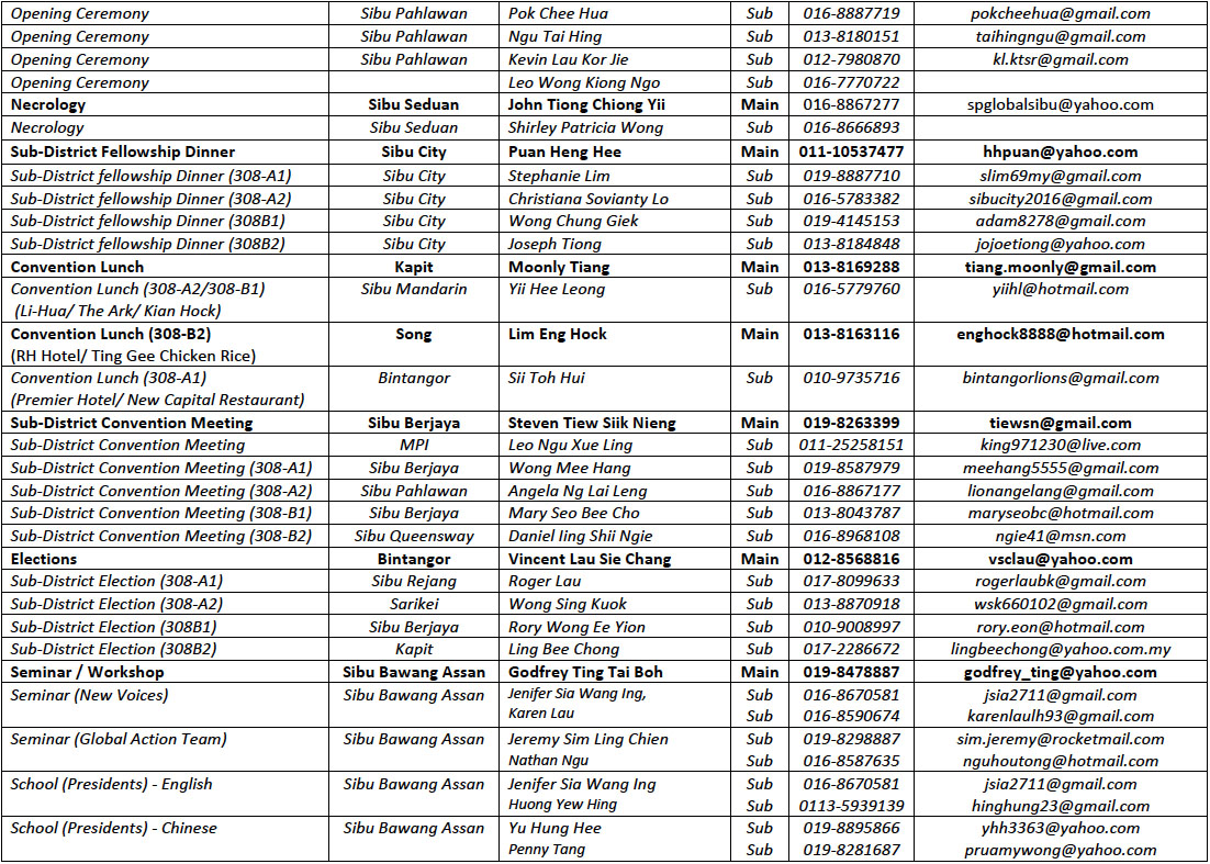 MAIN COMMITTEE MEMBERS